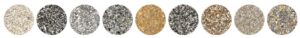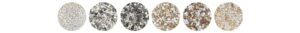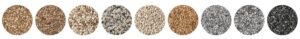 • Granulats de pierre naturelle (marbre, quartz, granit…) disponibles en plusieurs coloris et textures.